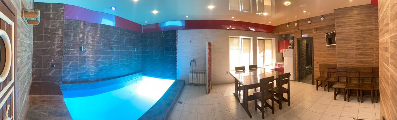Здесь Вас ждет настоящая русская парная с дровяной печью ,где вы сможете попариться настоящими вениками и искупаться в нашем эксклюзивном открытом бассейне ,который позволит окунуться в воду в помещении бани ,а вынырнуть в открытый бассейн с подогреваемой водой.В котором вы можете плавать и любоваться зимними пейзажами.Так же вы можете воспользоваться душевой кабиной, комнатой отдыха и небольшим банкетным залом с TV. Такой отдых – отличная возможность разнообразить повседневную жизнь!
